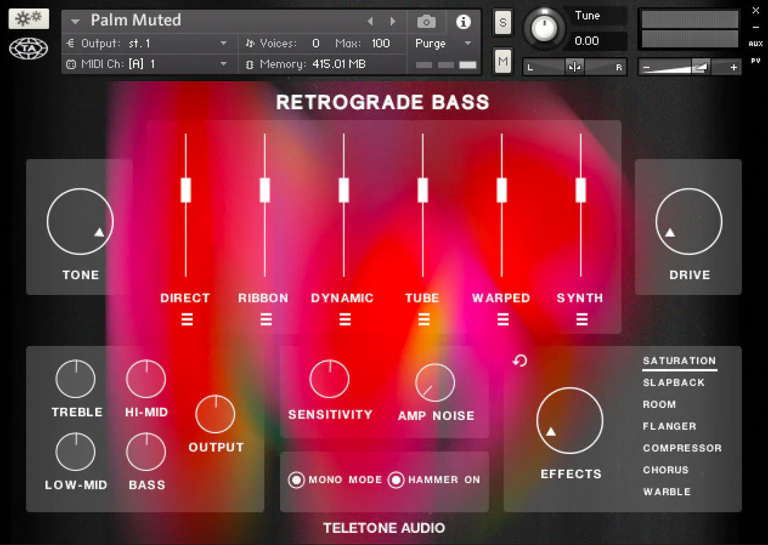 RETROGRADE BASS IS A VIRTUAL INSTRUMENT PLUG-IN FOR NATIVE INSTRUMENTS’ FREE KONTAKT PLAYER, COMPATIBLE WITH ALL MAJOR DAWS (LOGIC, PROTOOLS, CUBASE, FL STUDIO AND MORE).